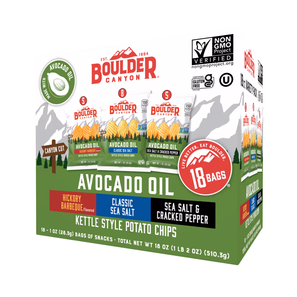 Boulder Canyon was founded by brothers John and Mark Maggio in 1994, who together wanted to create a healthier but equally delicious snack option. The two learned the methodology of making potato chips and soon after started to create healthier options using better-for-you oils, like olive oil or avocado oil. The Boulder brand was born and the rest is history…